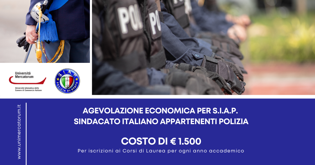 La convenzione stipulata dalla Segreteria Nazionale SIAP con l’Università Mercatorum prevende le seguenti agevolazioni economiche: