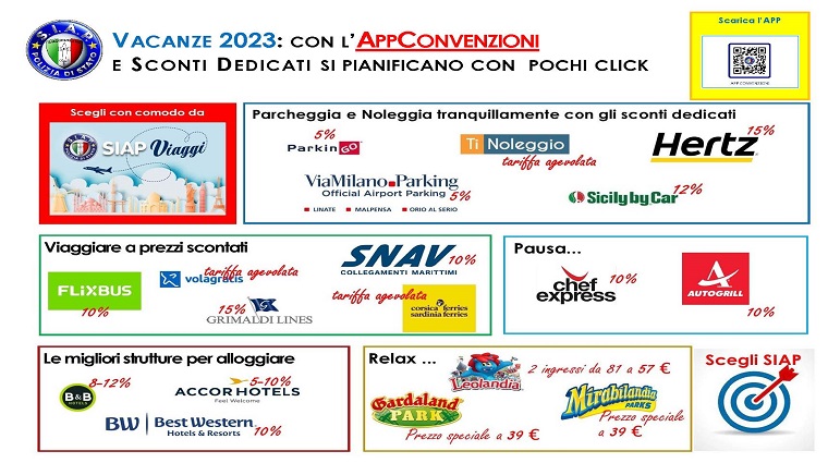 Con l'App Convenzioni SIAP e gli Sconti Dedicati, le vacanze 2023 si pianificano con pochi click ...