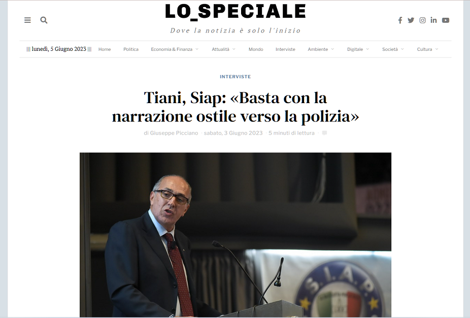 LoSpeciale - Intervista: Tiani, Siap: «Basta con la narrazione ostile verso la polizia»