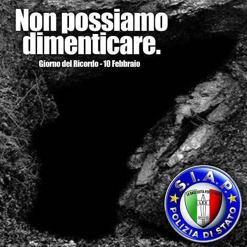Oggi nel “Giorno del ricordo” delle circa 20.000 vittime delle foibe e del drammatico esilio di 350.000 esuli italiani da Fiume, dall’Istria e dalla Dalmazia, vogliamo ricordare il sacrificio di tanti poliziotti appartenenti all’ex Corpo delle Guardie di Pubblica Sicurezza”. (...)