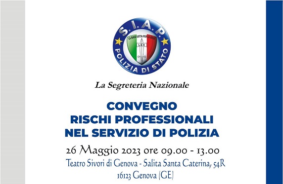 Si terrà a Genova, il giorno 26 maggio 2023 dalle ore 9,00 alle ore 13,00 il Convegno Nazionale dal titolo "Rischi professionali nel servizio di Polizia" presso il Teatro Sivori di Genova (...)