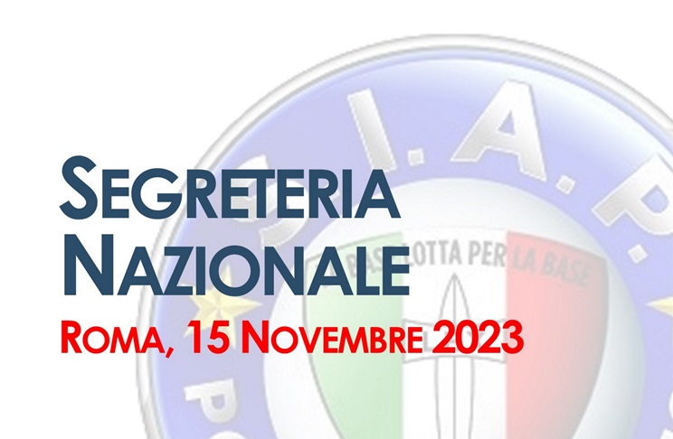 Riunione propedeutica all’incontro con il Premier on. Meloni e alla convocazione dell’Attivo Nazionale di tutte le strutture Provinciali e Regionali del Siap, per le valutazioni e analisi di merito rispetto all’esito del confronto con il Governo e delle misure allocate nel DDL bilancio 2024 dedicate ai diritti retributivi e previdenziali del personale e ai temi e alle criticità professionali della sicurezza e immigrazione.
