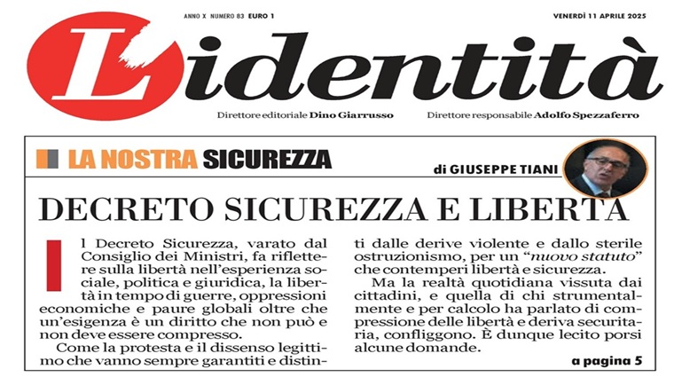 L'Identità - Il decreto Sicurezza di impone una riflessione sulla libertà