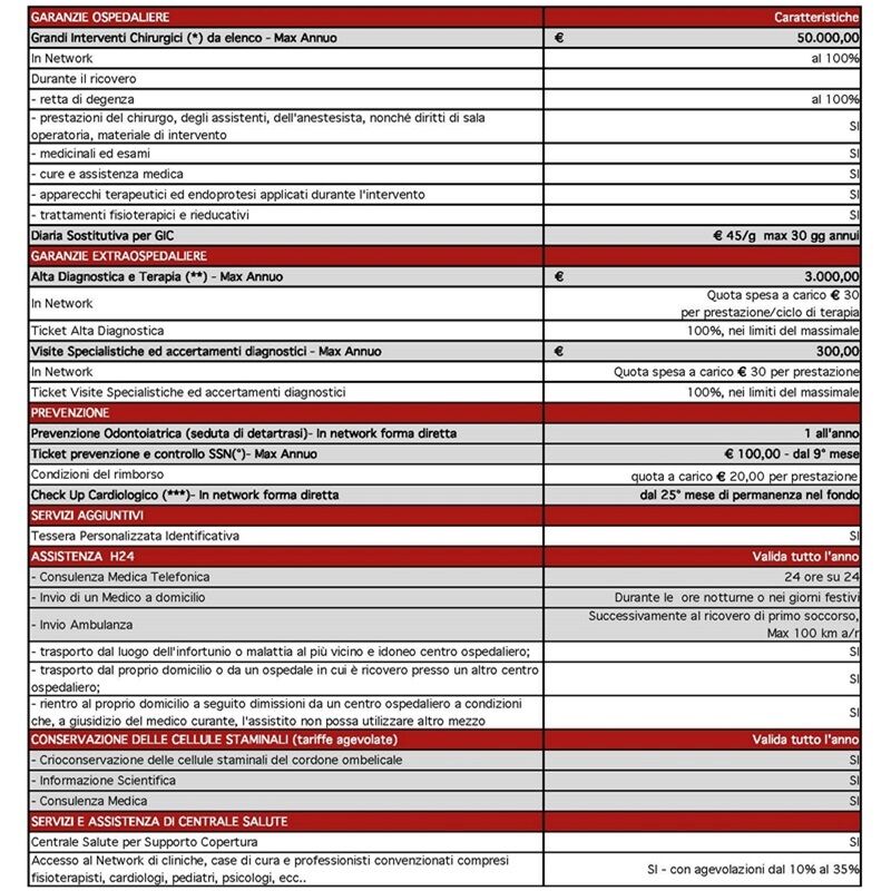 Di seguito uno specchietto riassuntivo delle maggiori garanzie assicurate: