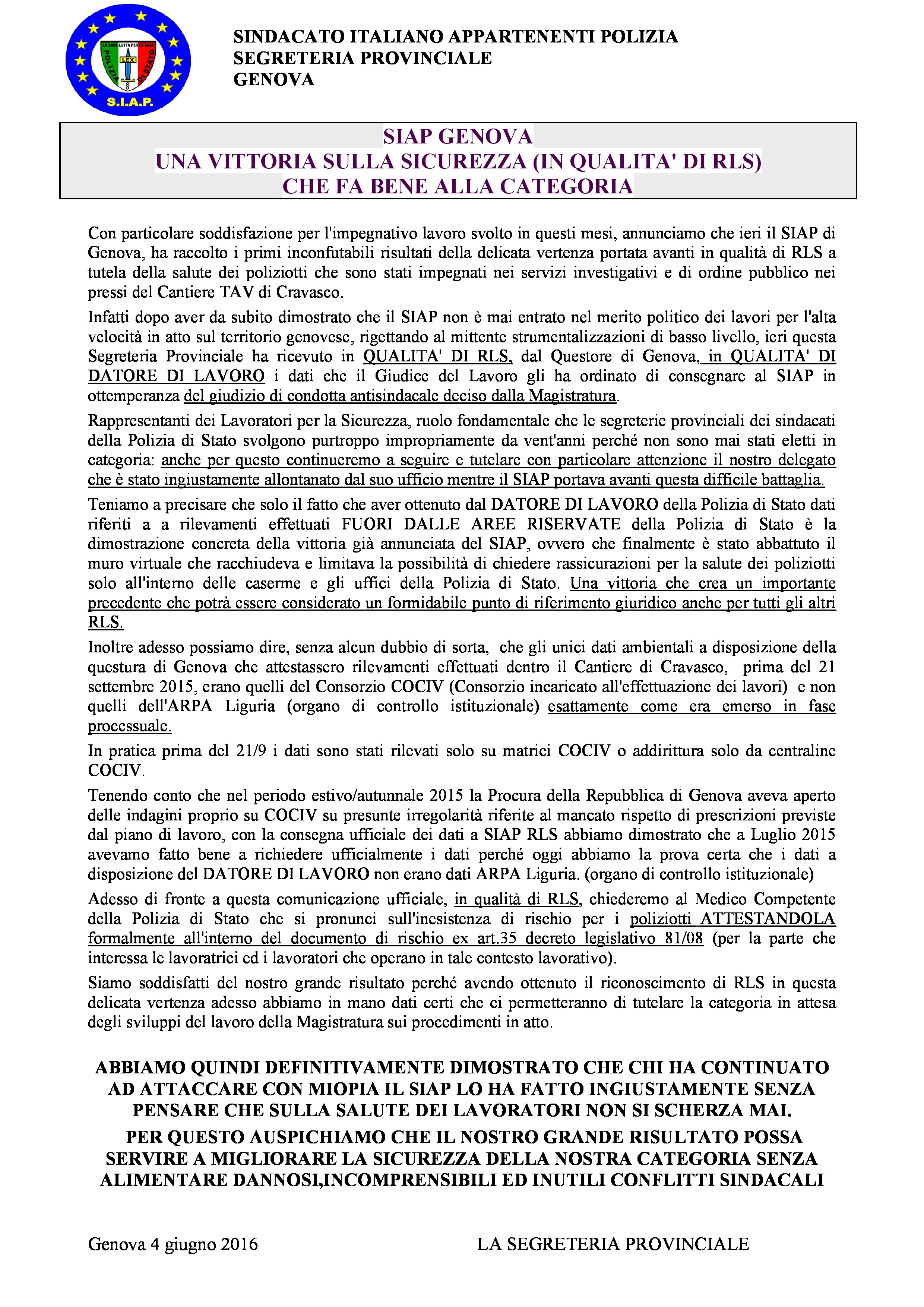 SIAP GENOVA UNA VITTORIA SULLA SICUREZZA (IN QUALITA' DI RLS) CHE FA BENE ALLA CATEGORIA