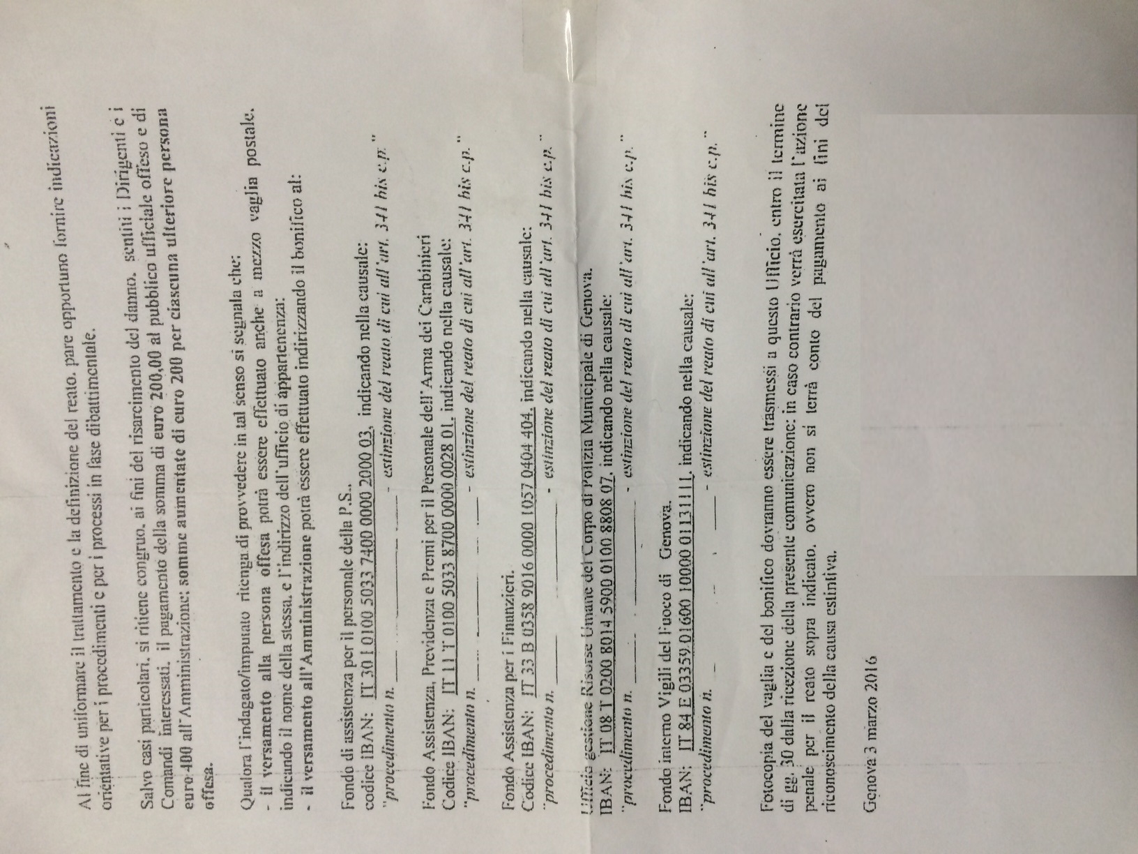 • La Procura di Genova ha incredibilmente standardizzato in 200 euro il costo che dovrà sborsare una persona
