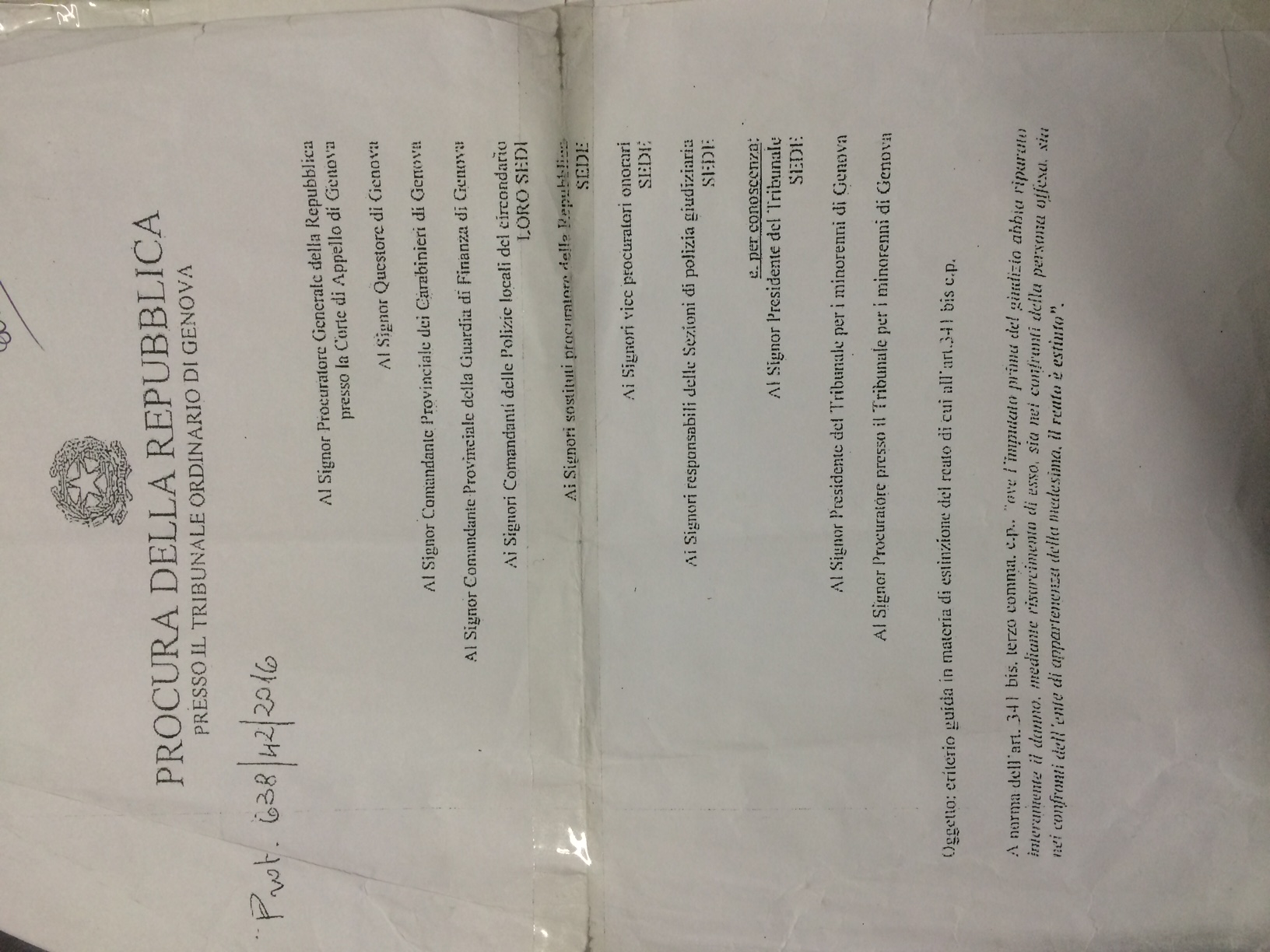 Alleghiamo circolare della Procura della Repubblica del 3 giugno 2016 e comunicato SIAP GENOVA