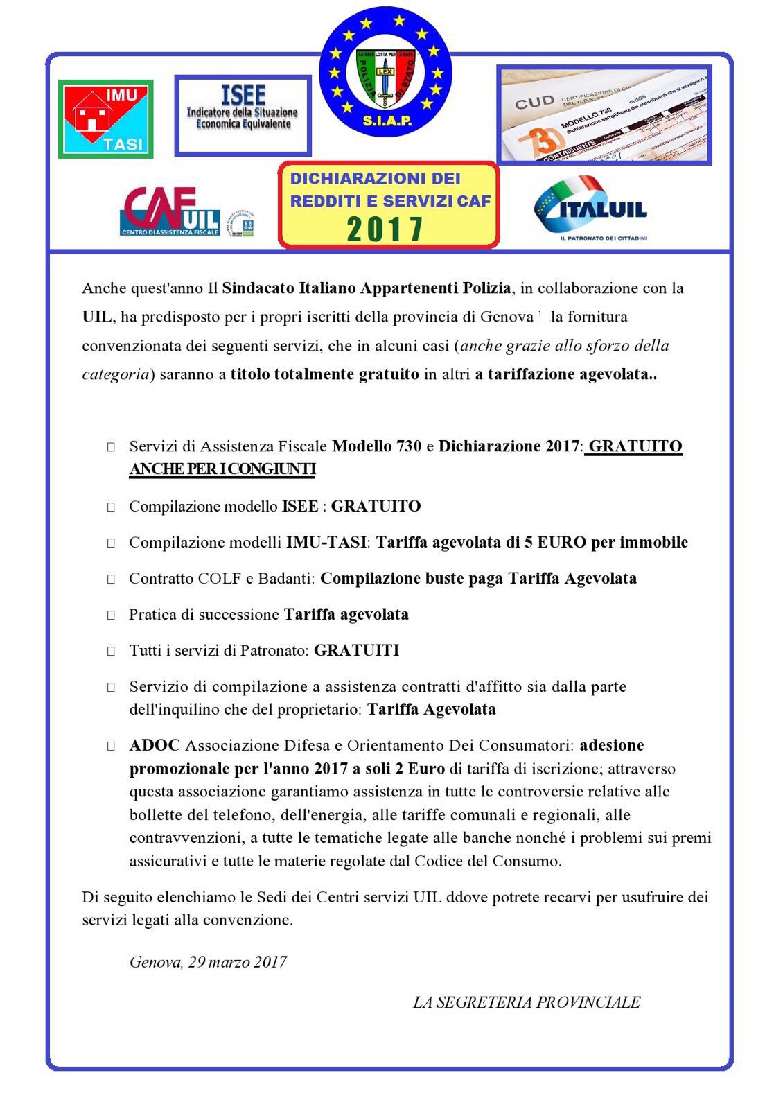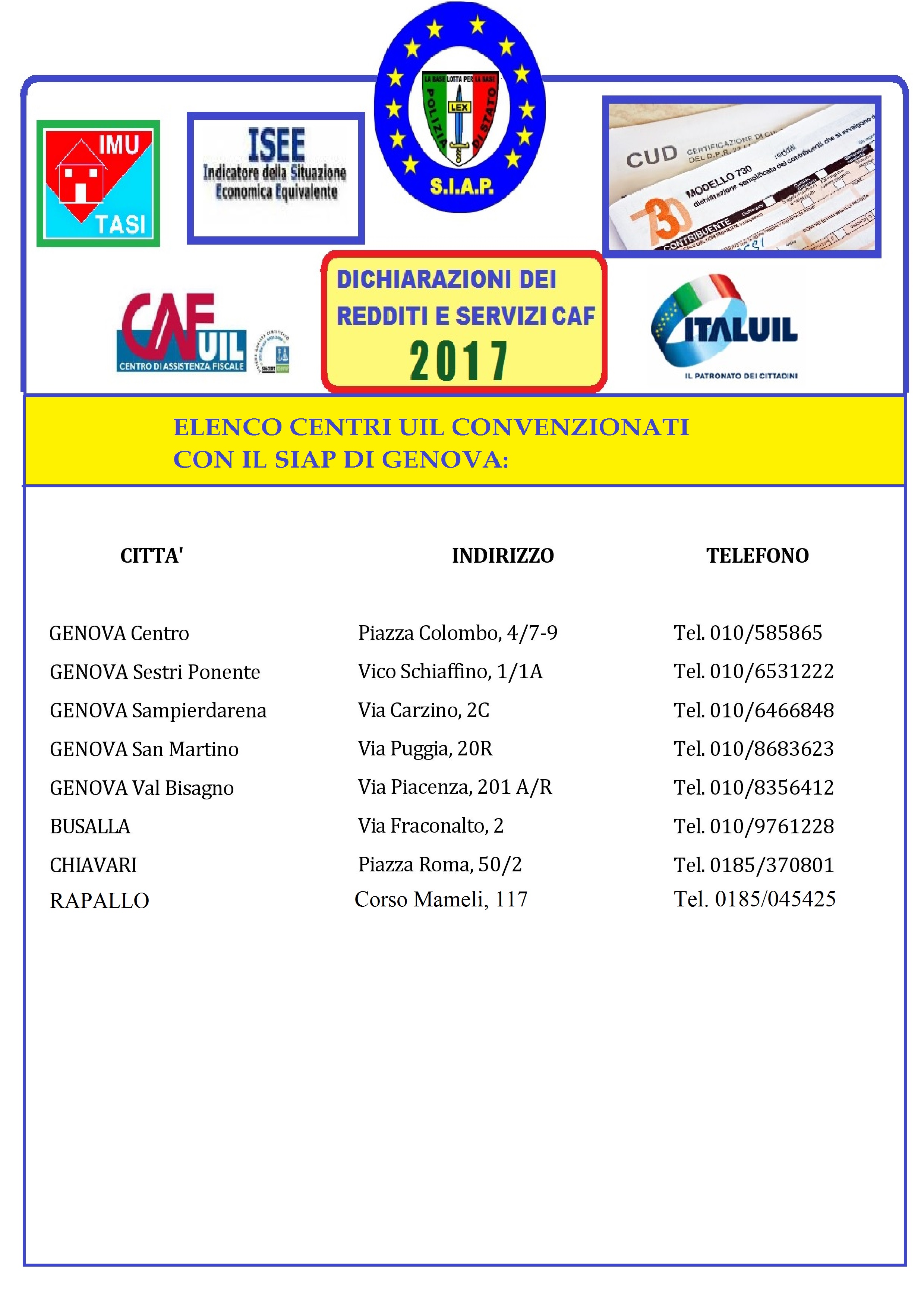 SIAP GENOVA DICHIARAZIONE DEI REDDITI 730 E SERVIZI CAF 2017, CONVENZIONE PER ISCRITTI SIAP GENOVA.
