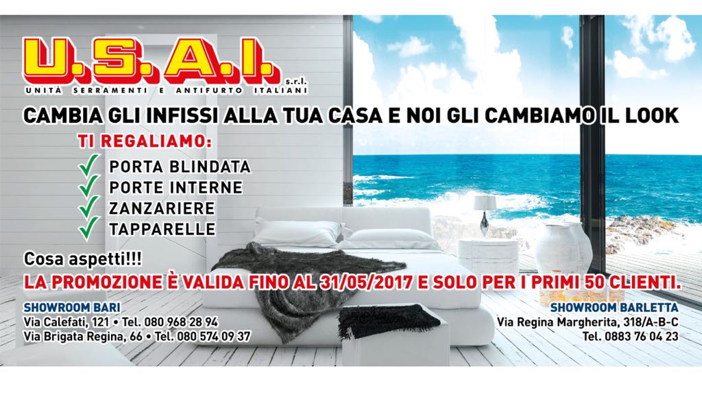 La scrivente Segreteria ha stipulato convenzione con l'azienda USAI Porte Corazzate.. La convenzione prevede uno sconto incondizionato dal 35% su tutte le tariffe pubbliche anno 2017 previa presentazione tessera di iscrizione anno 2017. Si rappresenta inoltre che fino al 31/05/2017 e solo per i primi 50 iscritti/clienti effettua una promozione vantaggiosa.
