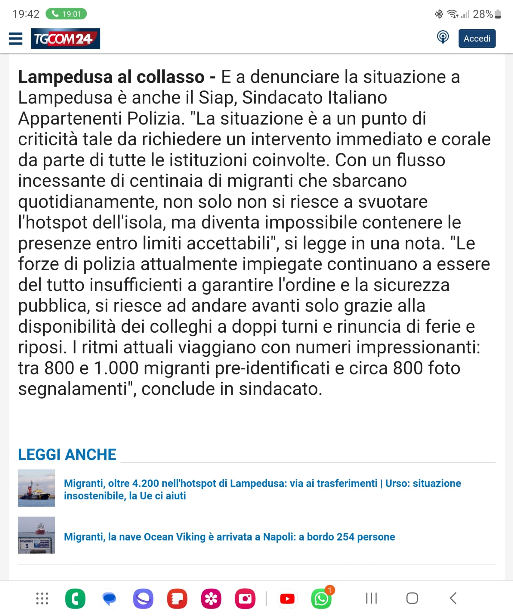 Rassegna - Migranti, sabato scorso sbarchi record: oltre 3mila arrivi in 24 ore. Siap: «L’hotspot di Lampedusa al collasso»