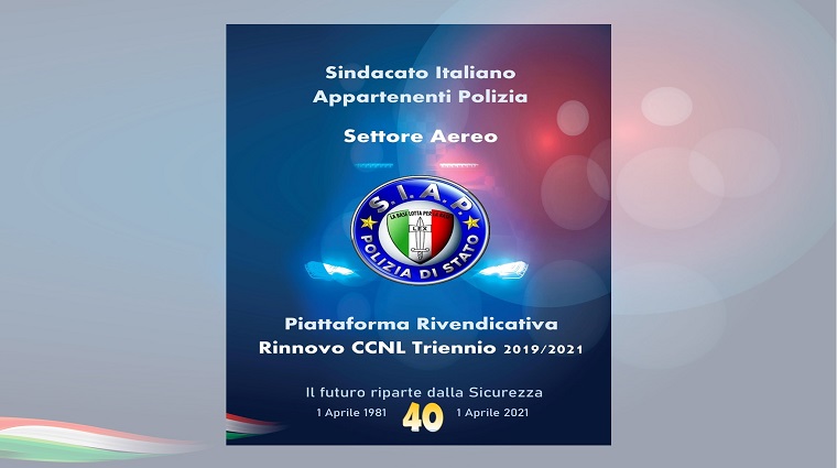 Pur rientrando nell'alveo della contrattazione per il rinnovo del contratto di lavoro del personale non dirigente, il SIAP ha elaborato una piattaforma contrattuale - data l'elevata specificità - per il Settore Aereo. (...)