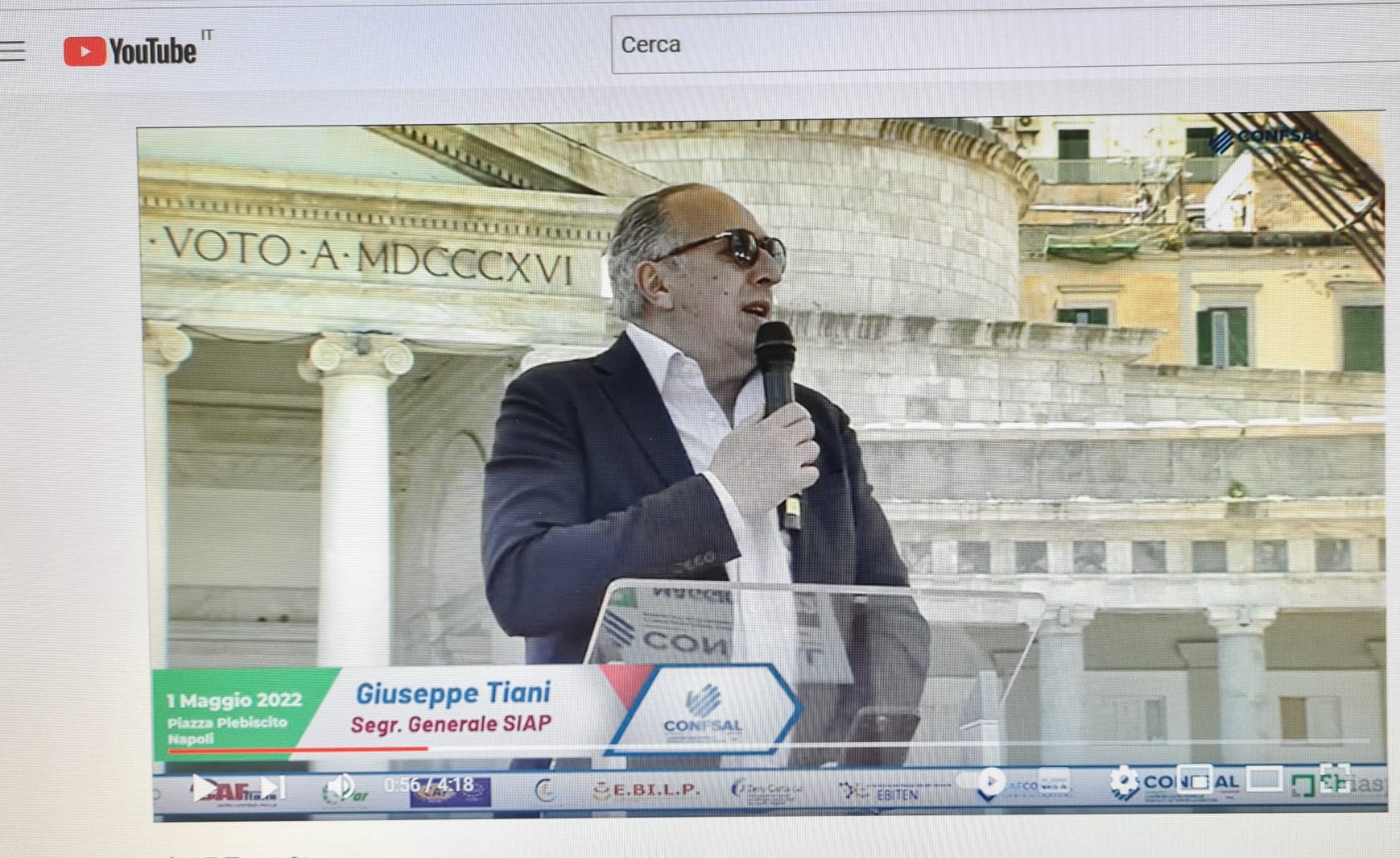 1 maggio 2022 - Napoli L'intervento del Segretario Generale del SIAP Giuseppe Tiani sul palco della Confsal